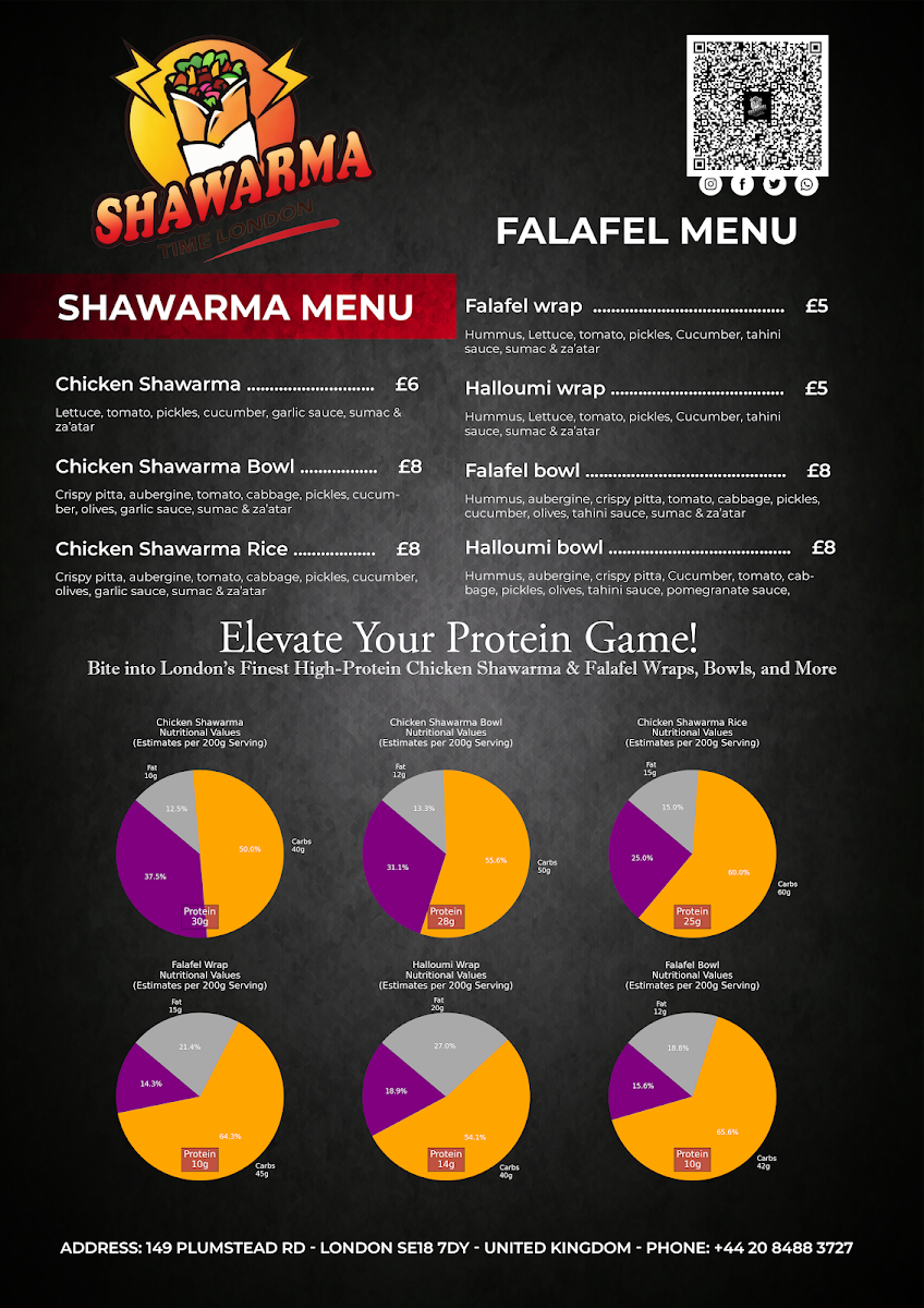 At Shawarma House London, located at 149 Plumstead Rd, London SE18 7DY, the menu offers a vibrant selection of Middle Eastern-inspired dishes, perfect for anyone craving a hearty and flavorful meal. The Special Offer section is a great place to start, with the Falafel Wrap priced at £4.50, offering a crunchy, satisfying vegetarian option. If you're in the mood for something with more protein, the Chicken Shawarma and Lamb Shawarma, both priced at £5.50, serve up classic shawarma meats wrapped in a soft pita, making for a filling and delicious meal.